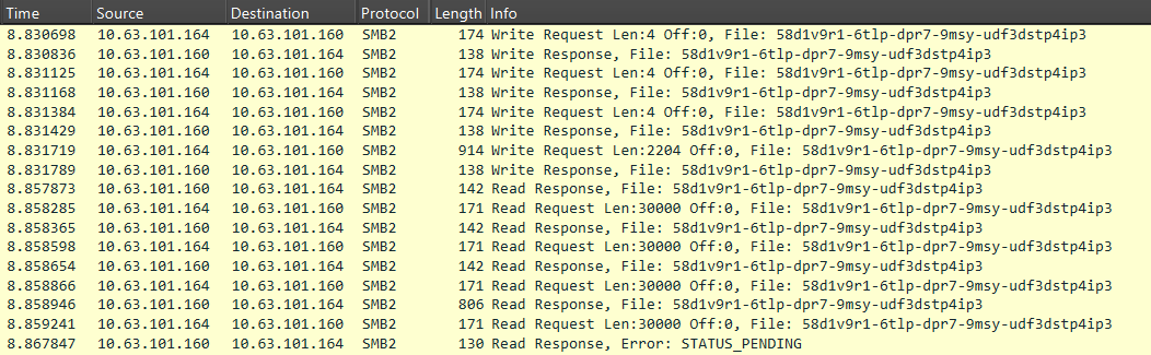 На скриншоте ниже показан пример коммуникации по протоколу SMB между агентами.
