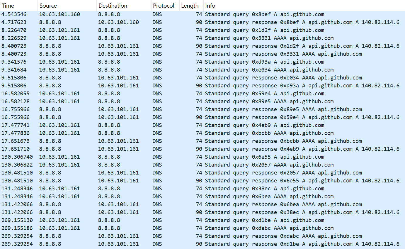 Соединение с GitHub выполнятся по протоколу HTTPS, поэтому при отсутствии возможности расшифровать трафик сигнатурные методы обнаружения работы агентов применить нельзя. Рассмотрим вариант поведенческого обнаружения активности агентов.