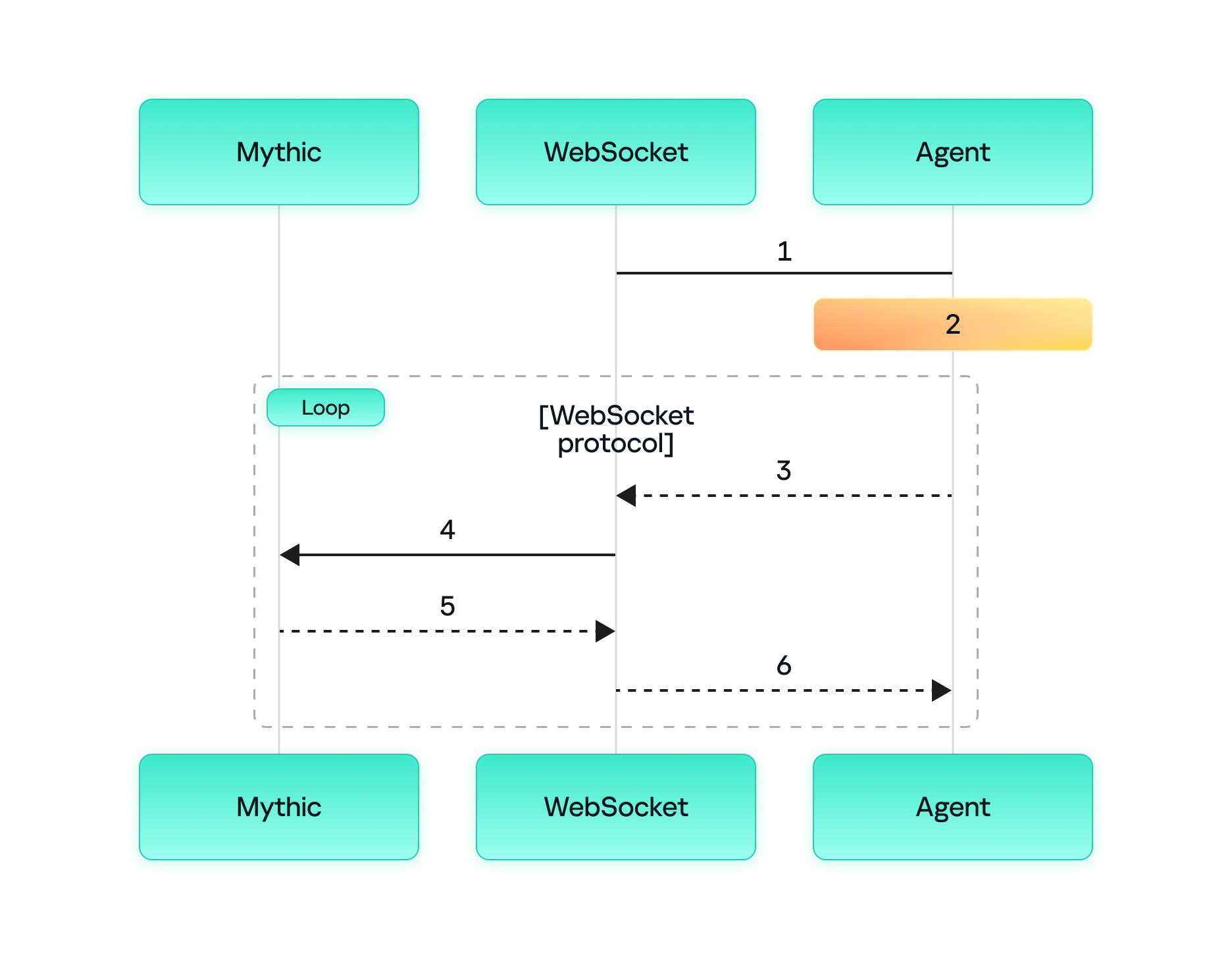 Протокол WebSocket обеспечивает двусторонний обмен данными между клиентом и удаленным хостом. Mythic может использовать его для управления своими агентами.