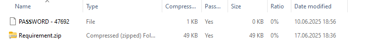 В прикрепленном к письму архиве Demand_984175.zip (MD5: e337c507a4866169a7394d718bc19df9) получатель может обнаружить еще один архив, защищенный паролем, и пустой файл с именем PASSWORD - 47692 . Примечательно, что вместо заглавных букв S здесь используется юникодный символ U+1D5E6. Вероятно, это сделано для того, чтобы автоматические средства не могли извлечь пароль из имени файла.