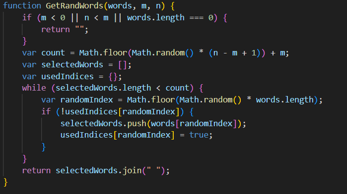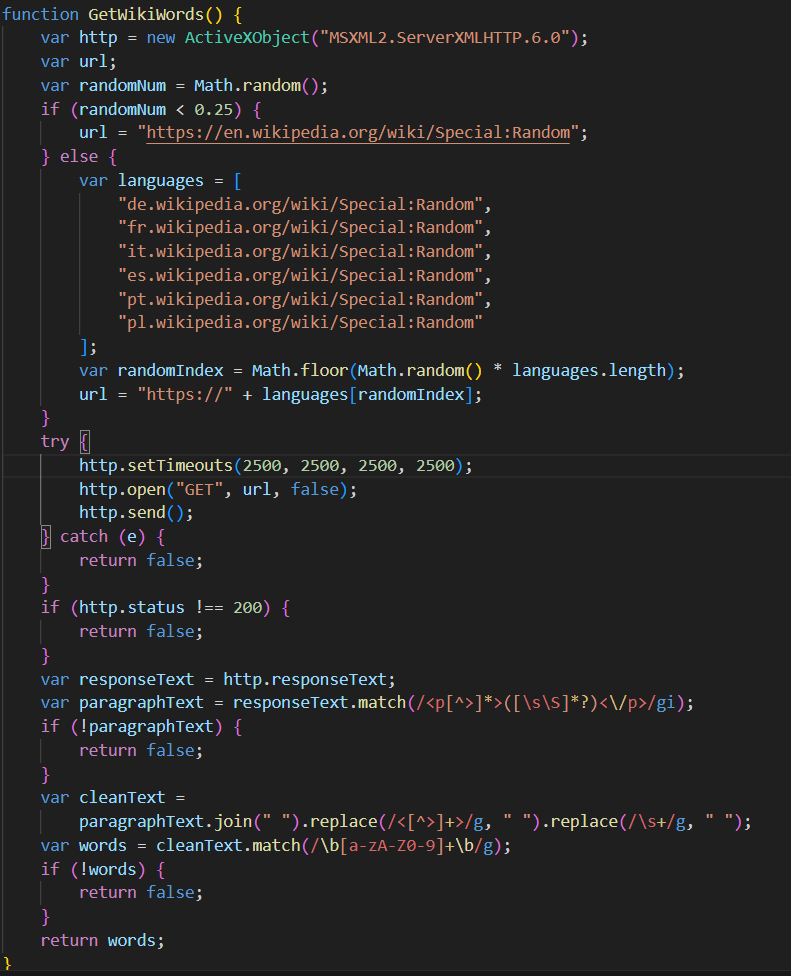 Затем скрипт генерирует список случайных слов из списка из Википедии, используя функцию GetRandWords.