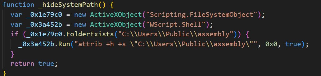 При обнаружении виртуального окружения к строке GUID добавляется префикс V, в ином случае — R. Затем директория, где сохранен GUID, которая, по-видимому, является основной рабочей директорией скрипта, скрывается.