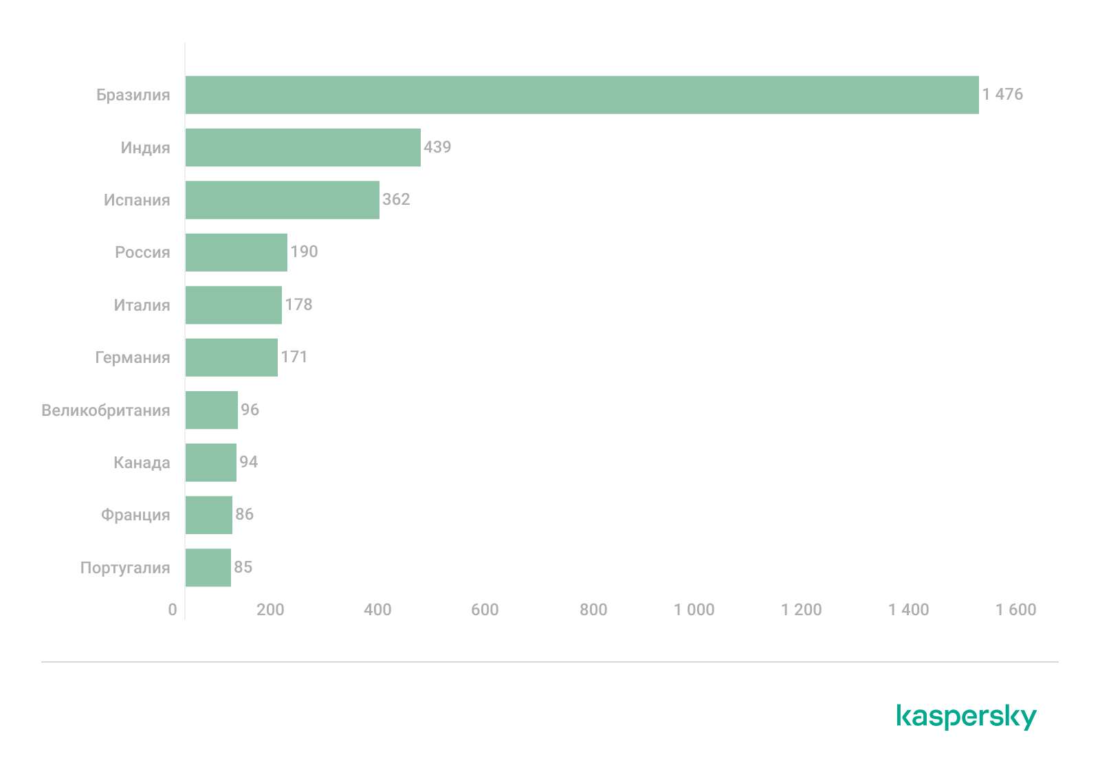 С октября 2024 по июль 2025 года с троянцем Efimer столкнулись 5015 пользователей решений «Лаборатории Касперского». Зловред был наиболее активен в Бразилии, где атаки коснулись 1476 пользователей. Также в числе самых затронутых стран оказались Индия, Испания, Россия, Италия и Германия.