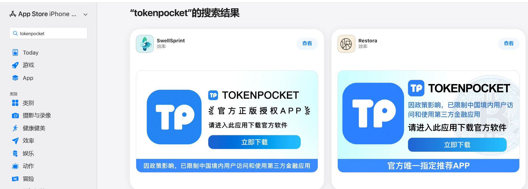 В марте этого года мы обнаружили в топе поисковой выдачи китайского App Store фишинговые приложения, стилизованные под распространенные криптокошельки. Ввиду региональных ограничений некоторые оригинальные приложения криптокошельков для пользователей из Китая (с выставленным в настройках Apple ID китайским регионом) сейчас недоступны. Мошенники воспользовались этой ситуацией: они создали поддельные приложения, использовав похожие на оригинальные иконки и названия с некоторыми намеренными опечатками (техника тайпсквоттинга), чтобы предположительно обойти ограничения App Store и повысить вероятность обмана пользователей.