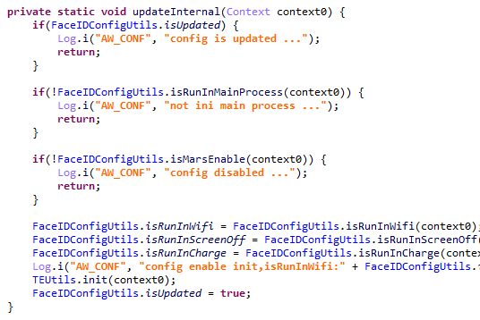 Полезная нагрузка проверяет, не запущена ли она в системных приложениях из числа сервисов Google, а также в системных приложениях операторов Sprint и T-Mobile. Последние, как правило, встречаются в специальных версиях устройств, которые операторы продают по заниженной цене с условием, что покупатель заключит с ними договор на предоставление услуг связи. Если зловред запущен в таких процессах, то он завершает свою работу. Также в нем реализован механизм завершения работы, если в системных директориях присутствуют файлы с определенными именами.