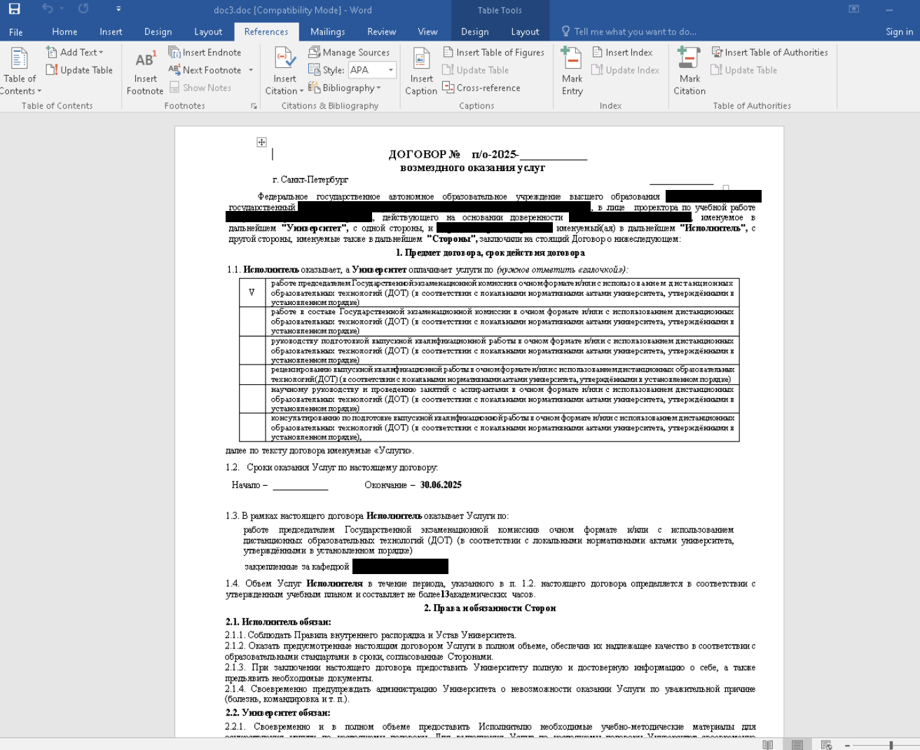 Контракт на оказание услуг по Договору № 5445-95 Исх. № 125.com