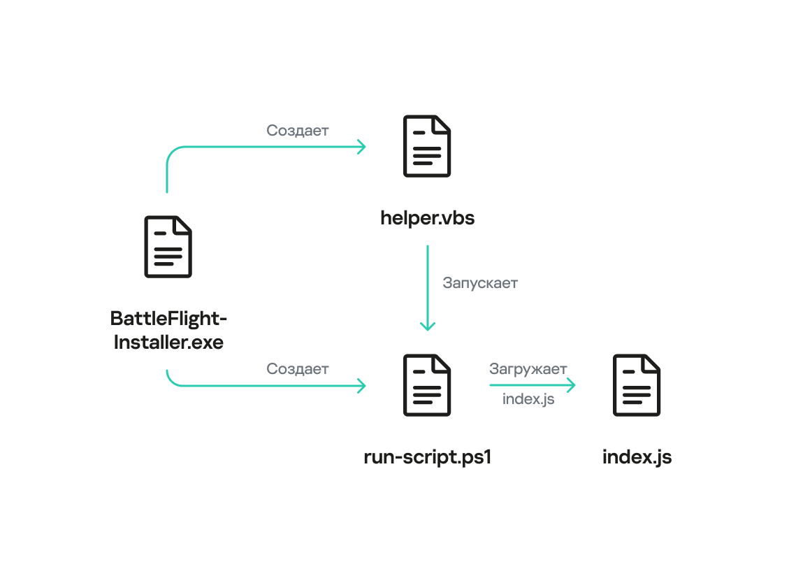 При запуске он создавал на диске два файла: helper.vbs и run-script.ps1, после чего выполнял первый. VBS-скрипт, в свою очередь, запускал PowerShell-скрипт, главная задача которого — загрузка файла index.js.
