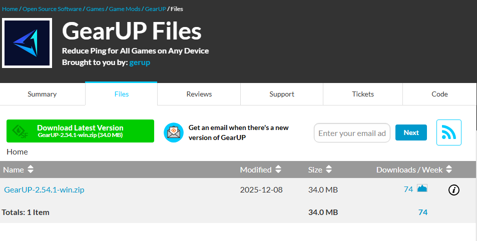 Также мы обнаружили поддельный установщик, размещенный злоумышленниками на популярной платформе SourceForge. Он мимикрировал под GearUP — сервис по улучшению соединения в онлайн-играх.