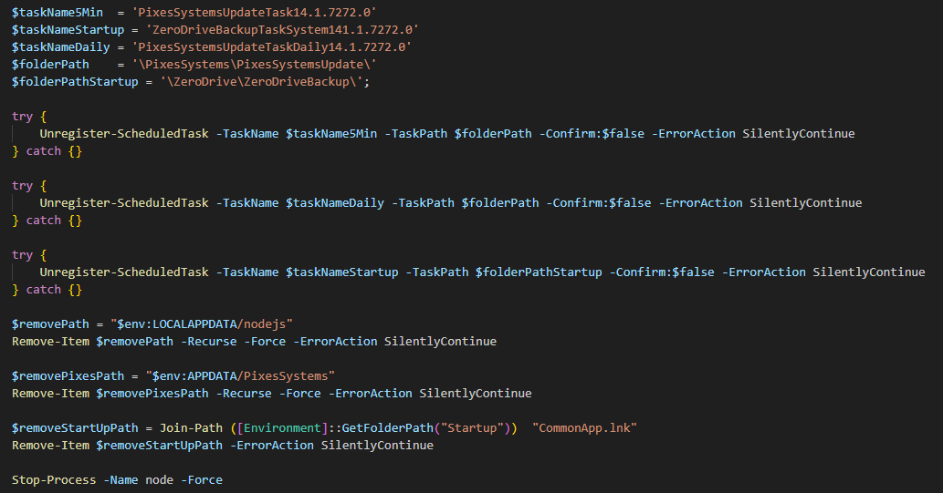 Создает запланированную задачу PixesSystemsUpdateTask14.1.7272.0 на запуск этих скриптов |