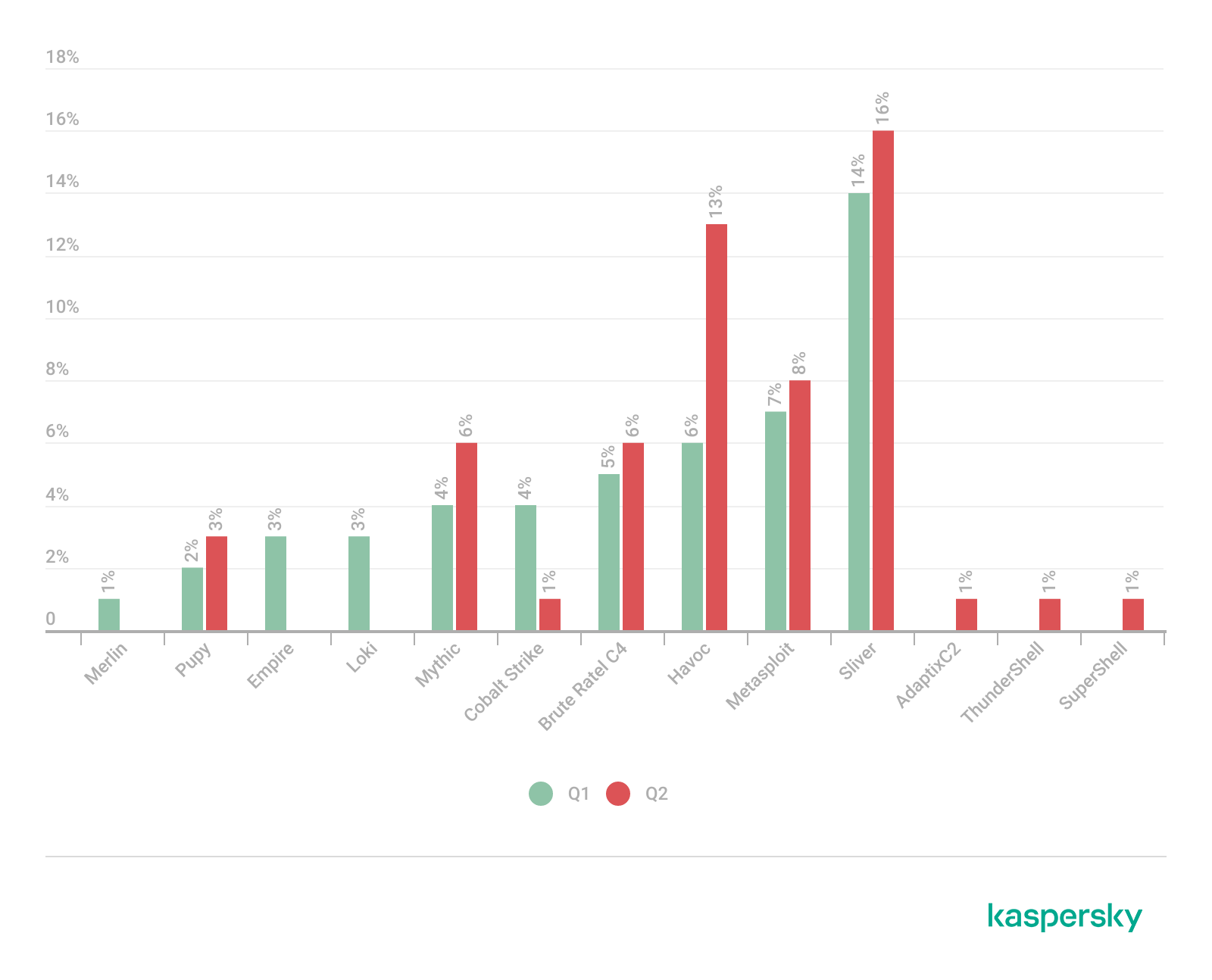 ТОР 13 C2-фреймворков, используемых APT для компрометации систем пользователей, Q1 — Q2 2025 (скачать)